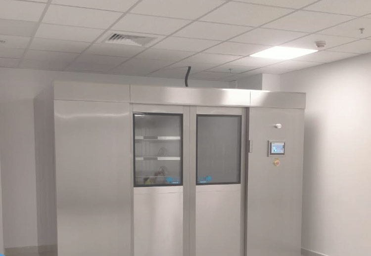 工作原理介紹:檔案消毒除塵室采用全不銹鋼材質制作,進門為自動感應雙側是移門,人員觸碰按鈕后開門,將托盤送入到除塵室內,人員退出后關閉自動門,當門關閉后,除塵室內啟動風淋除塵,此時自動門鎖閉,工作報警指示燈顯示為紅色狀態,門無法打開。當除塵時間到達后,報警指示燈顯示為綠色并發出報警聲音,門為可開狀態。人員取出托盤,將之送入到庫房內進行保存。