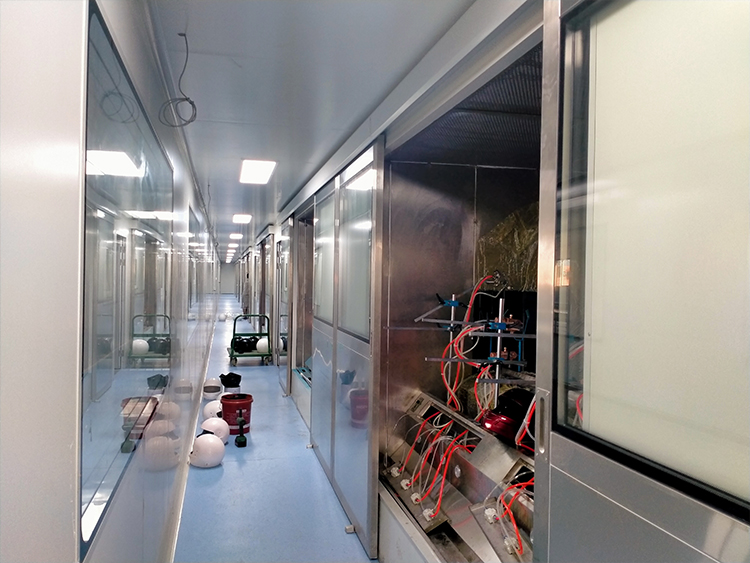 噴漆分為單層和多層漆,又分為底涂、中涂漆、面涂漆,漆面顧名思議就是最后一道工藝,面漆也是最為關鍵的一道工藝,如果在進行面漆的時候,一旦頭盔表面有細小的顆粒,在噴漆完成后,將會使頭盔表面留下瑕疵,且是無法修復的,只能算是一個次品了。專業品質的頭盔生產線廠家都會在最后的噴漆工藝上下功能,除了常規的打磨、做底之外,在面漆的環境上尤其注重。常規的做法是采用G45的初效進行過濾處理,再經過F8的中效處理,再上一個檔次,廠家會要求H13的高效過濾器的處理,這個是按照0.3μm的灰塵過濾效率達到99,995%,至少達到行業高標準的30萬級凈化要求。下圖為易純公司為浙江云紅科技安裝的30萬級噴漆線的凈化車間安裝,目前已經正式投入生產。