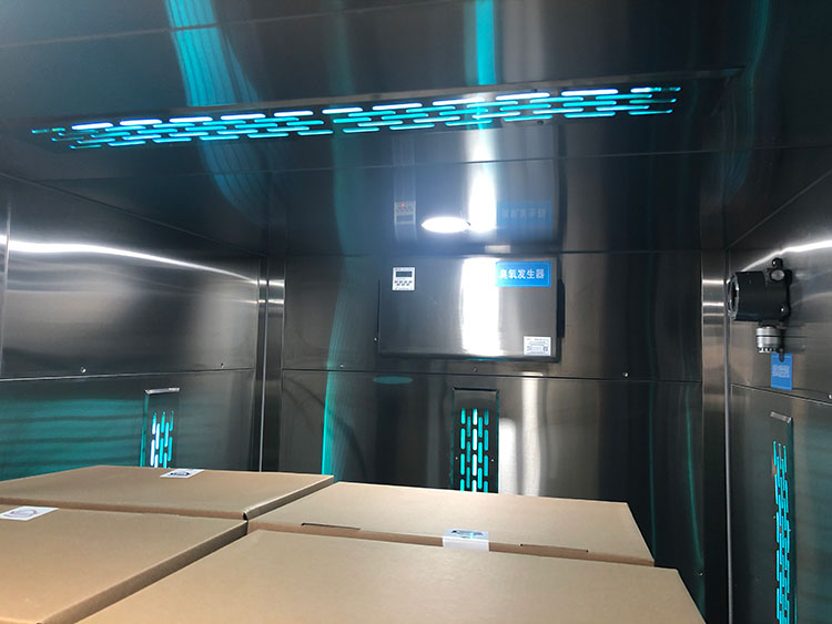 工作原理介紹:檔案消毒室采用全不銹鋼材質制作,進門為雙開手動開門,操作人員打開雙門后將托盤送入到消毒室內,人員退出后關閉雙門,當門關閉后,消毒室開始啟動臭氧發生器和紫外線同步工作,此時門鎖閉,工作報警指示燈顯示為紅色狀態,門無法打開。觸摸屏實時顯示臭氧濃度,當達到設定的濃度及設定的消毒時間后,臭氧和紫外線燈自動停止工作,內部臭氧開始啟動降解模式,當臭氧濃度降解到安全值以下,報警指示燈顯示為綠色,門為可打狀態。人員取出托盤,將之送入到庫房內進行保存。