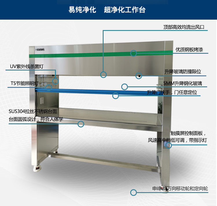 安全可靠的保障措施: 嚴格按照國際電氣安全標準規范設計,確保產品具有多重安全保護措施,采用柔光型的照明燈與紫外線殺菌燈控制單獨控制,同時需要注意的是紫外線殺菌只能在工作前開殺菌,在人工作時不允許開紫外線殺菌燈,避免紫外線殺菌燈對人體皮膚造成灼傷。
