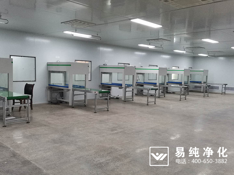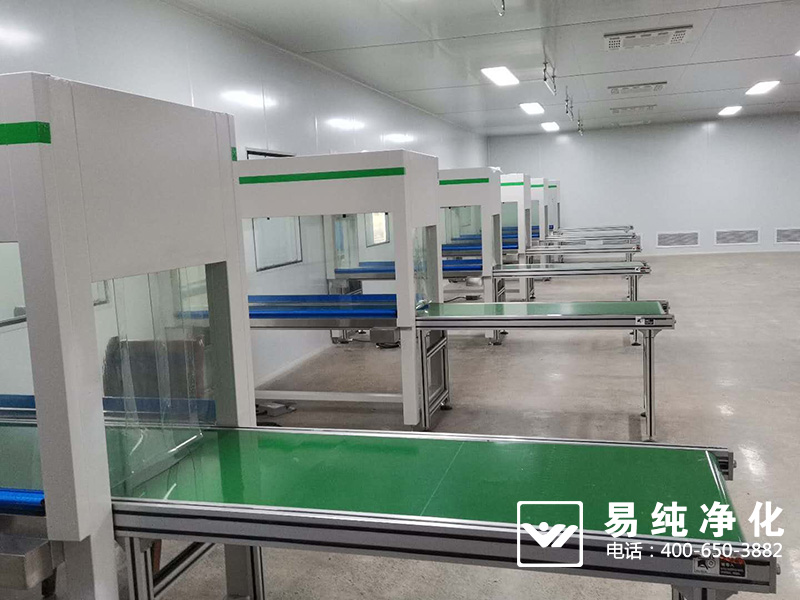 湖北森源食用菌二期新廠房使用多臺易純食用菌操作臺,流水線食用菌接種臺提供百級無菌的潔凈環境,用于食用菌接種使用,配套以輸送線工作,輸送帶速度可調,同時配以腳踏開關。內部配以紫外線殺菌燈及照明燈具,在工作前提前進行殺菌操作,確保接種臺為無菌狀態。